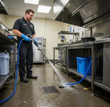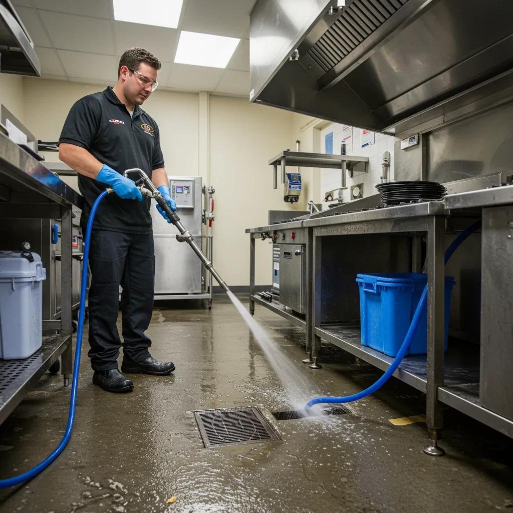 Hydro-jetting is a high-pressure water cleaning method that dislodges grease, sludge, scale, and solid obstructions, restoring pipe capacity without excavation. It is effective because it removes the adhered layers that cause recurring clogs and because nozzle selection and pressure control tailor cleaning to specific deposit types. For businesses, hydro-jetting reduces repeat service calls and is scalable for both small-diameter kitchen lines and large commercial mains. Post-jetting camera verification confirms clearance and validates the procedure.